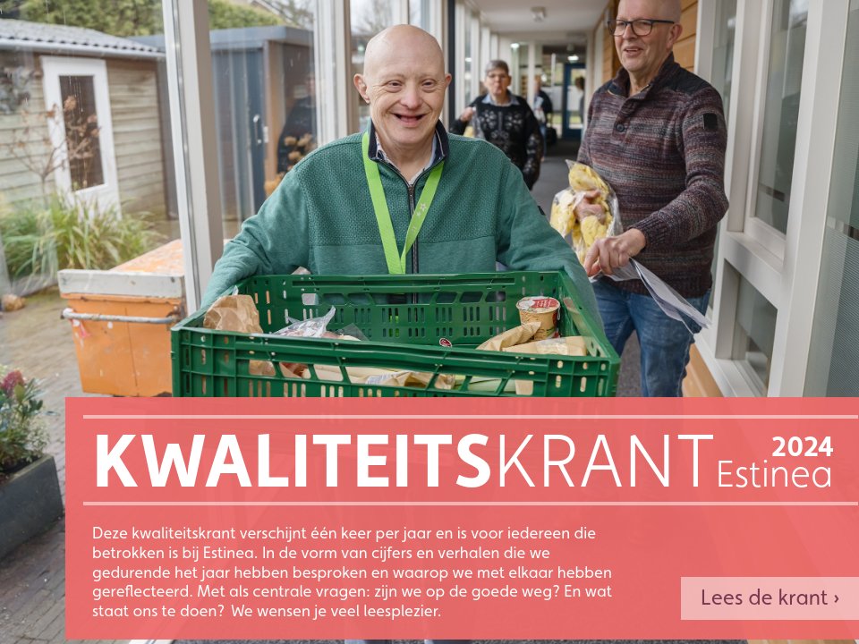 In deze editie: Kwaliteitskrant 2024 Estinea Deze kwaliteitskrant verschijnt één keer per jaar en is voor iedereen die betrokken is bij Estinea. In de vorm van cijfers en verhalen die we gedurende het jaar hebben besproken en waarop we met elkaar hebben gereflecteerd. Met als centrale vragen: zijn we op de goede weg? En wat staat ons te doen? We wensen je veel leesplezier. Lees de krant ›